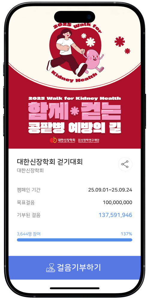 2025 Walk for Kidney Health, 함께 걷는 콩팥병 예방의 길은 대한신장학회가 주최하고
